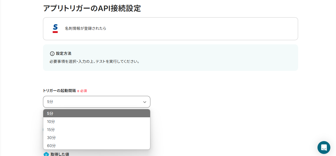 トリガーの起動タイミングは、5分、10分、15分、30分、60分のいずれかで設定できます。