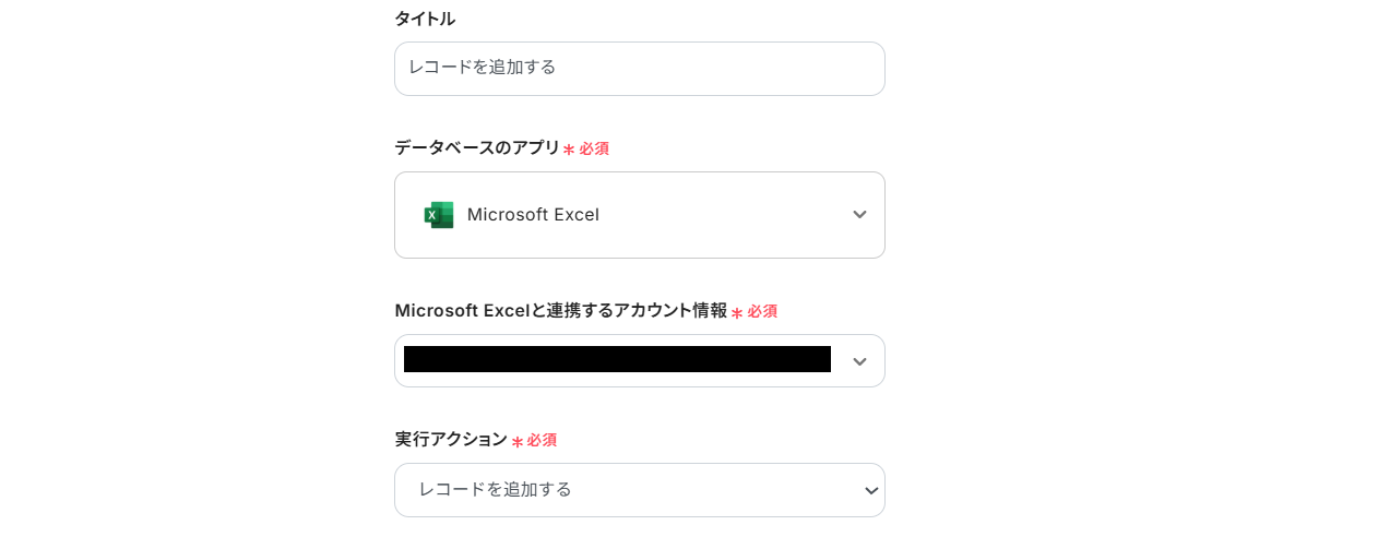 Microsoft Excelと連携するアカウント情報やタイトルは、先ほどと同様に確認・修正してください。