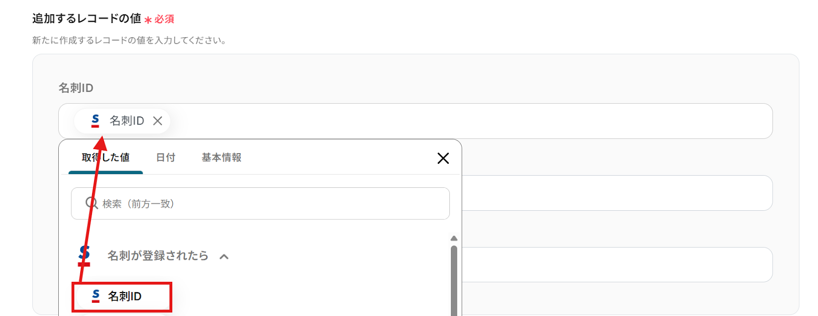 各項目をクリックすると、Sansanで取得した値を引用できます。