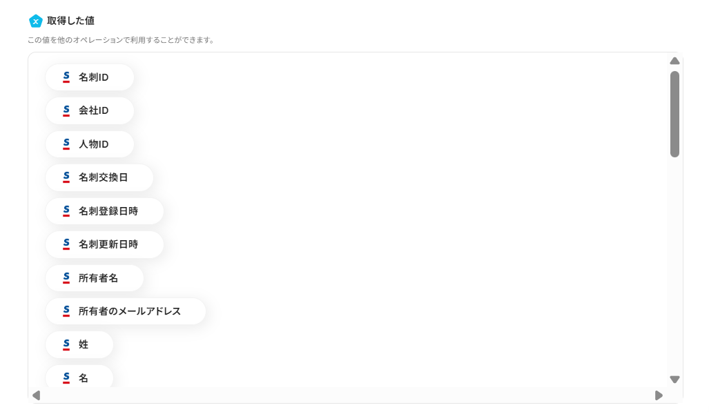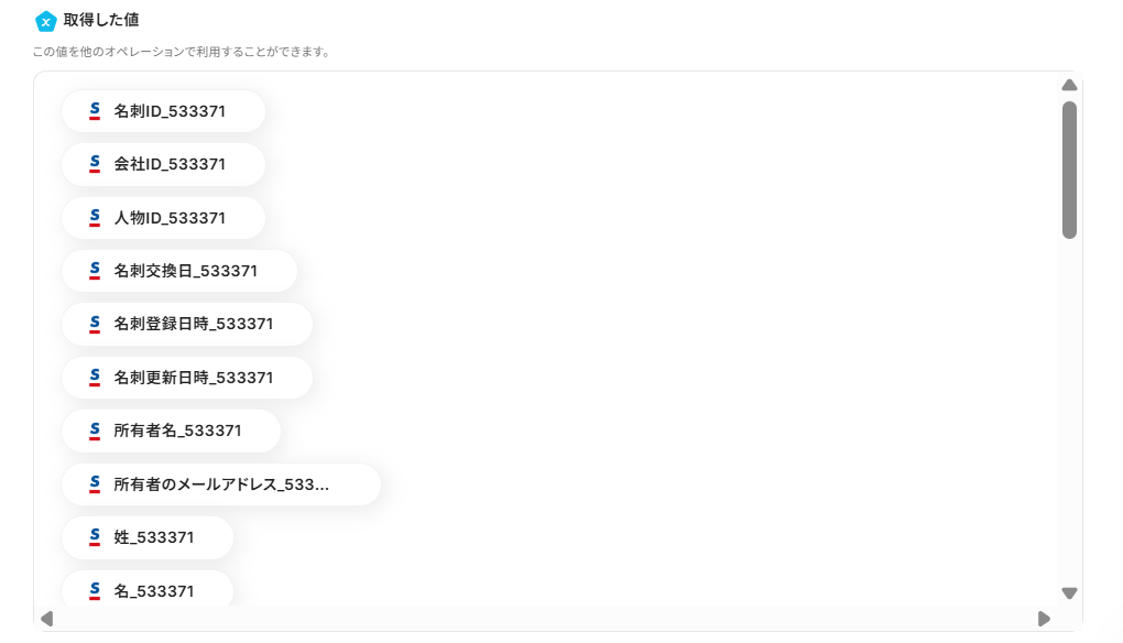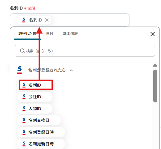 3.「名刺ID」は先ほど取得したアウトプットから選択します。