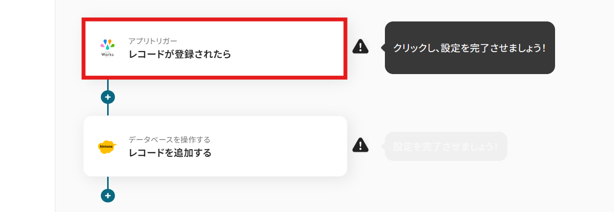 まず、一番上の「レコードが登録されたら」のアイコンをクリックします。