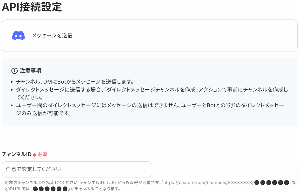 ※アクセストークンにはDiscord Developer Portalから取得したBotトークンを設定してください。