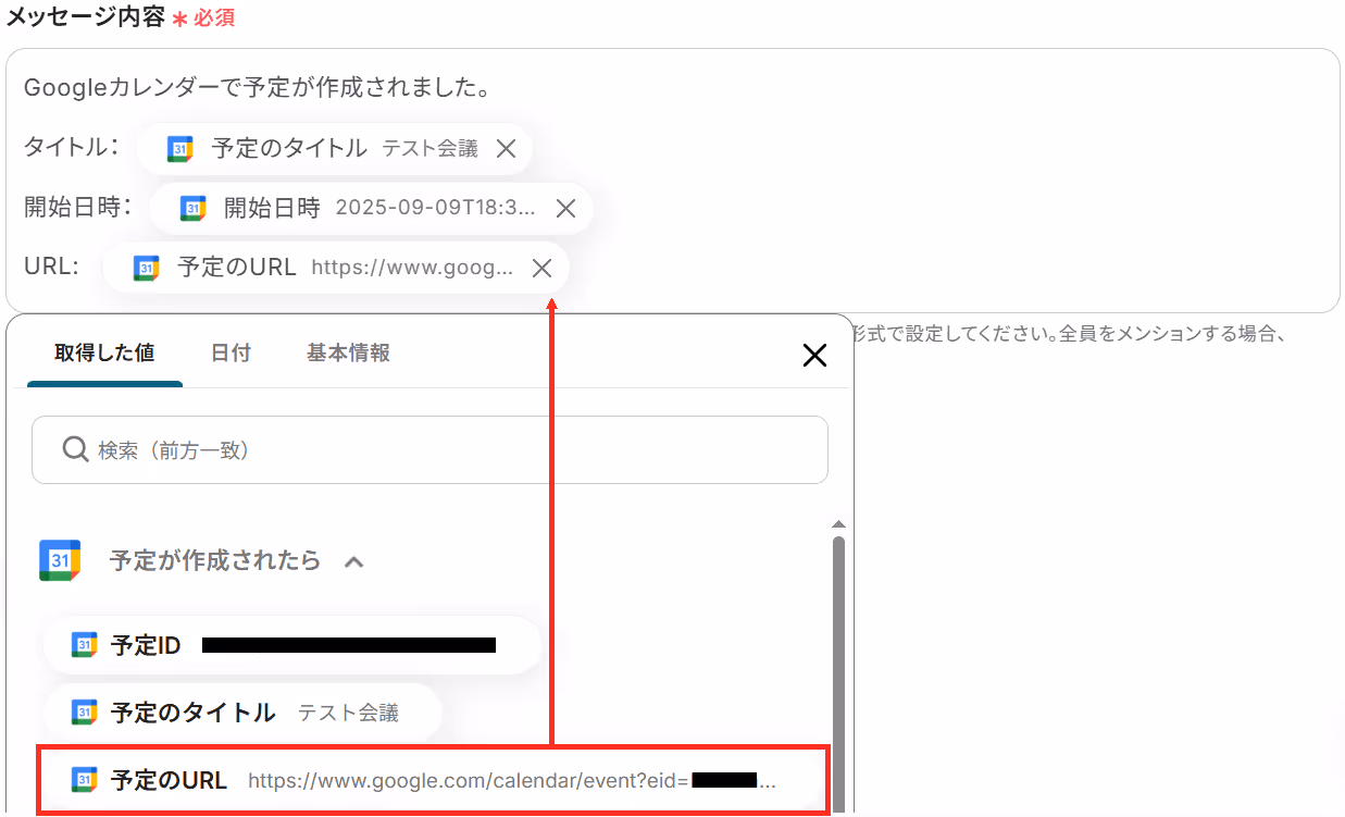 取得した値を使うことにより、Googleカレンダーの予定ごとに変わる情報をDIscordへ動的に反映できます。
