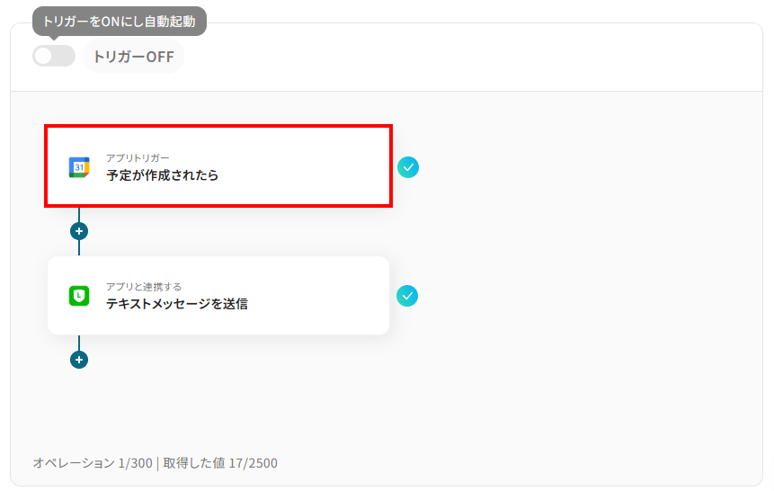 それではここから代表的な例として、Googleカレンダーで新規イベントが作成されたら、その内容をLINE公式アカウントに自動で通知するフローを解説していきます!