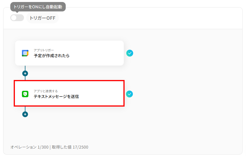 なお、今回のフローでは最低でもテキストメッセージを送信(1タスク)を消費します。