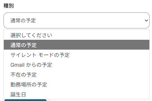「種別」は、プルダウンから選択できます。