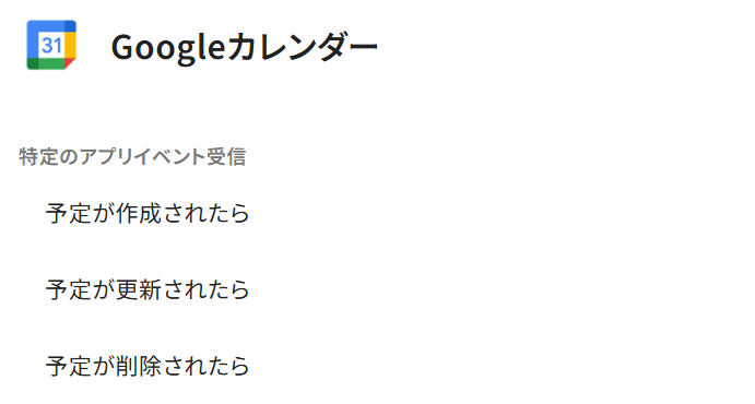 Googleカレンダーをトリガーとしたフローを構築する場合、主に次のようなアクションをきっかけにフローを起動し、他のツールへデータを連携することができます。