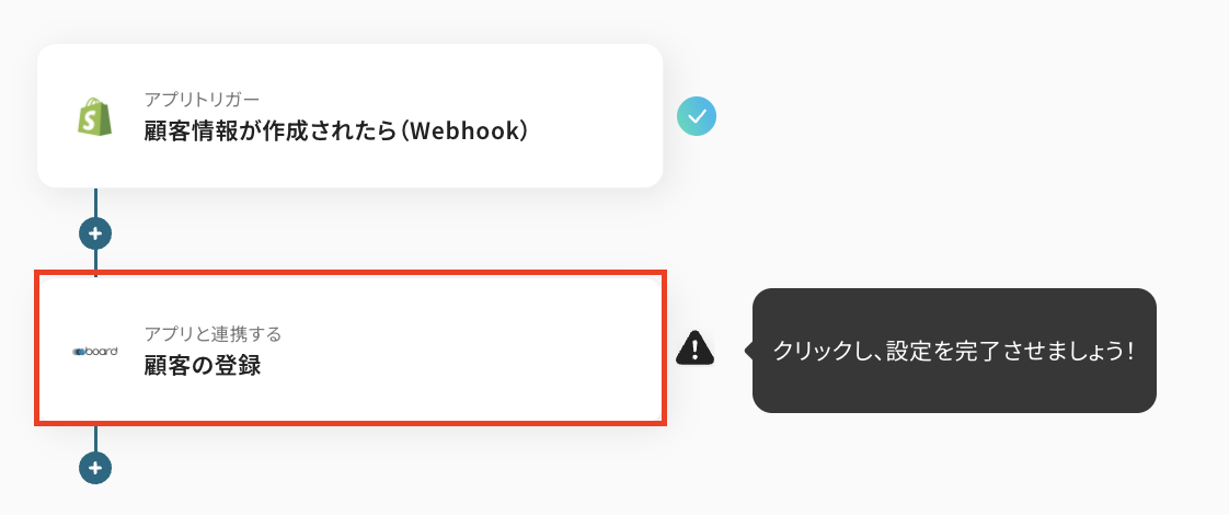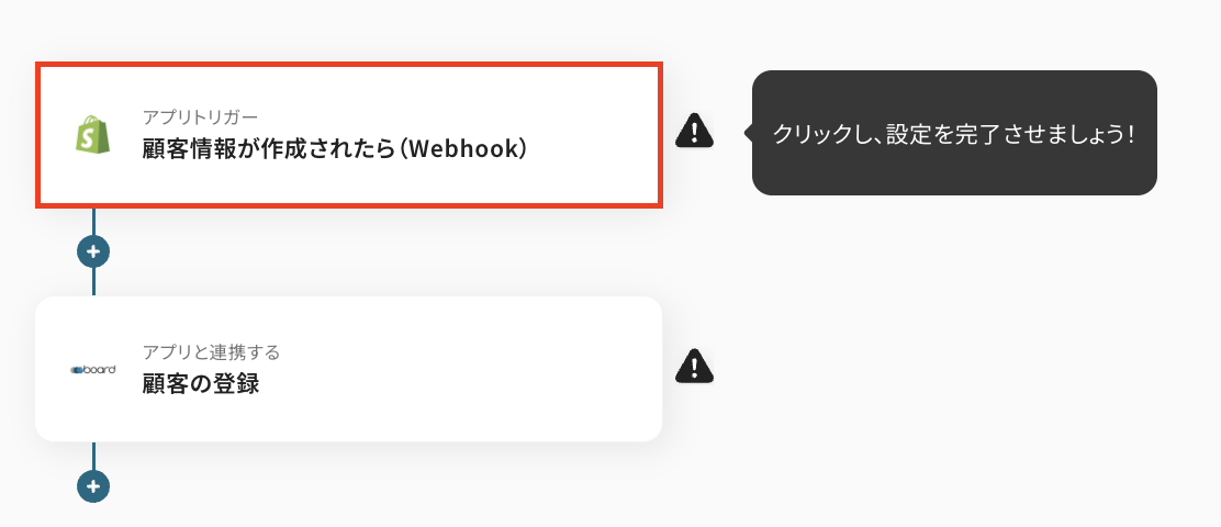 - Shopifyのトリガー設定およびboardの顧客登録設定