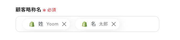 顧客略称名:「顧客名」同様にアウトプットを使って設定しましょう。