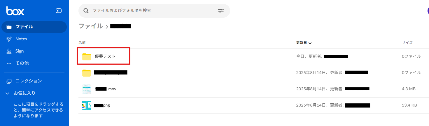 設定完了後は「テスト」を行い、実際にBoxにデータが追加されることを確認してください。