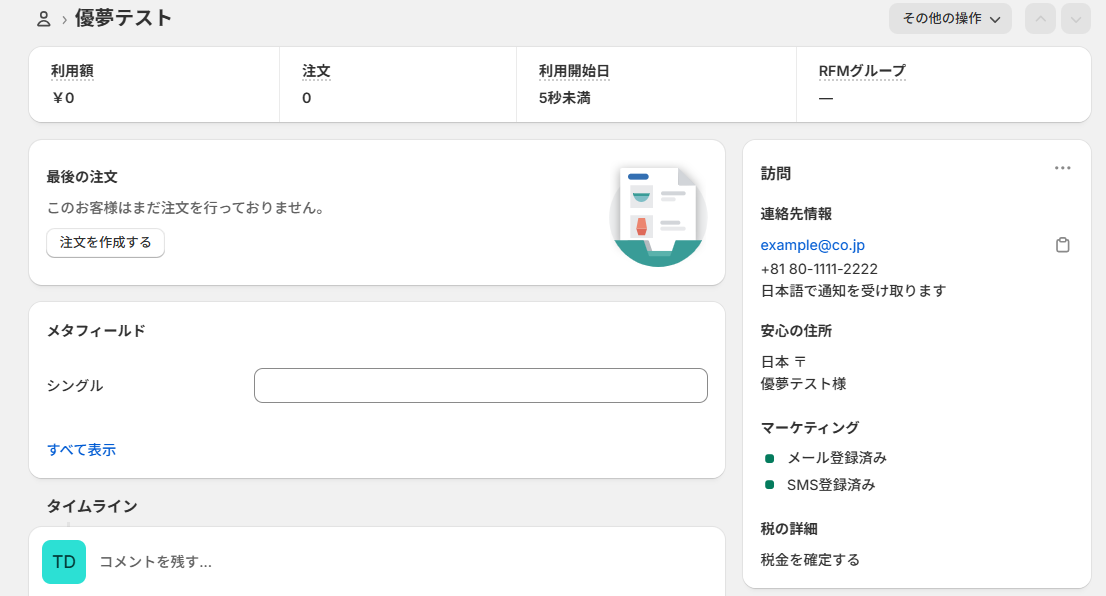 テスト用のため、顧客情報内容は架空の情報(「株式会社test」や「テスト太郎」など)でOKです!