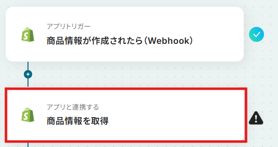 次に、Shopifyで作成した商品情報の詳細を取得する設定を行います。 「商品情報を取得」をクリックしてください。