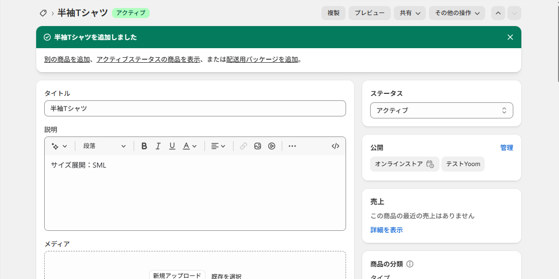 Shopifyでテスト用の商品を作成してください。(架空の情報でOKです!)