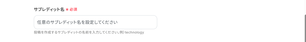 サブレディット名は、枠外の注釈を参考に任意で設定してください。