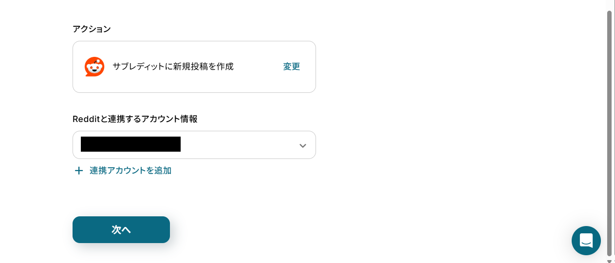 続いて、Redditアイコンの「サブレディットに新規投稿を作成」という項目を設定します。