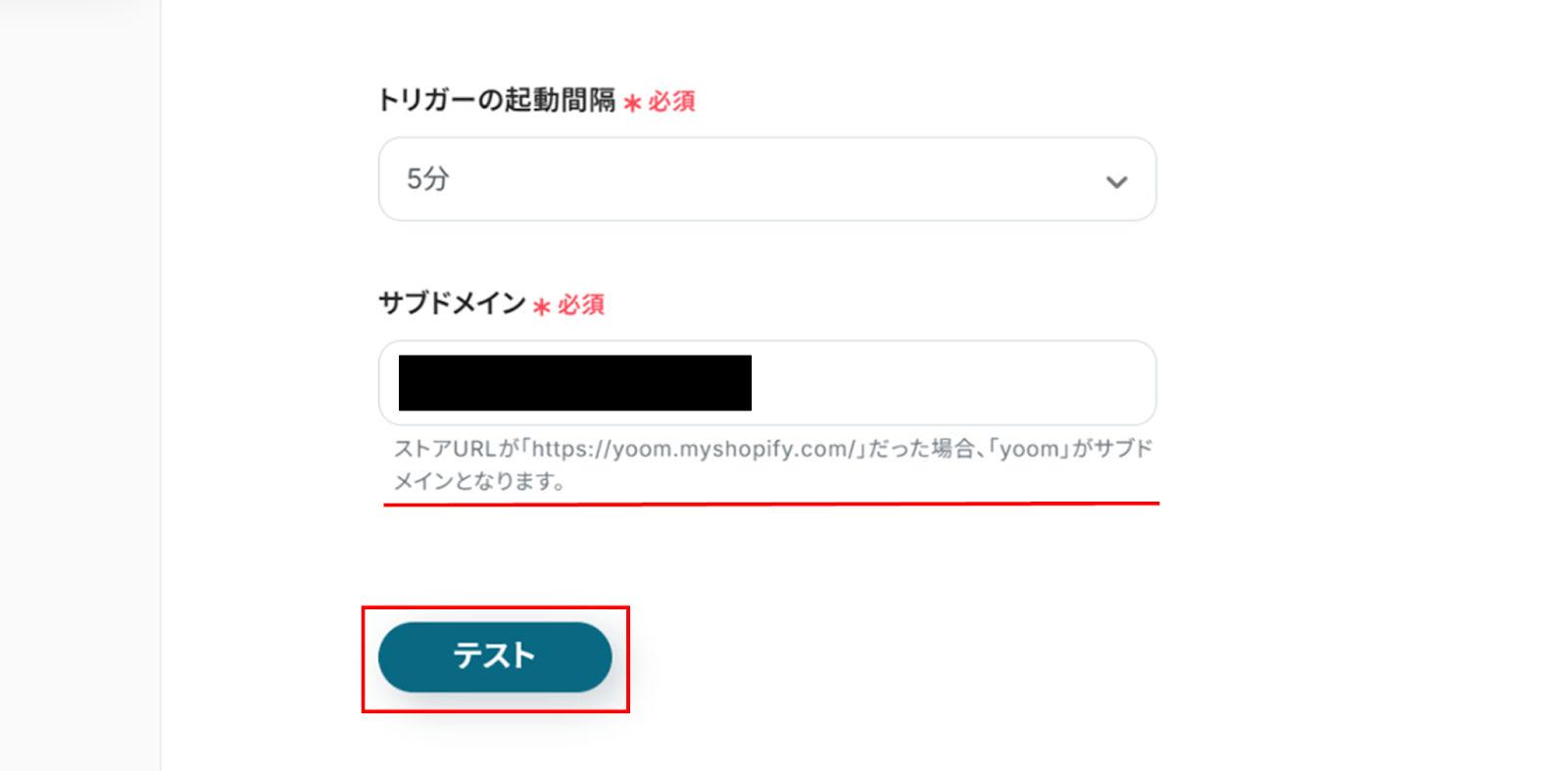 入力が終わったら「テスト」をクリックしましょう。