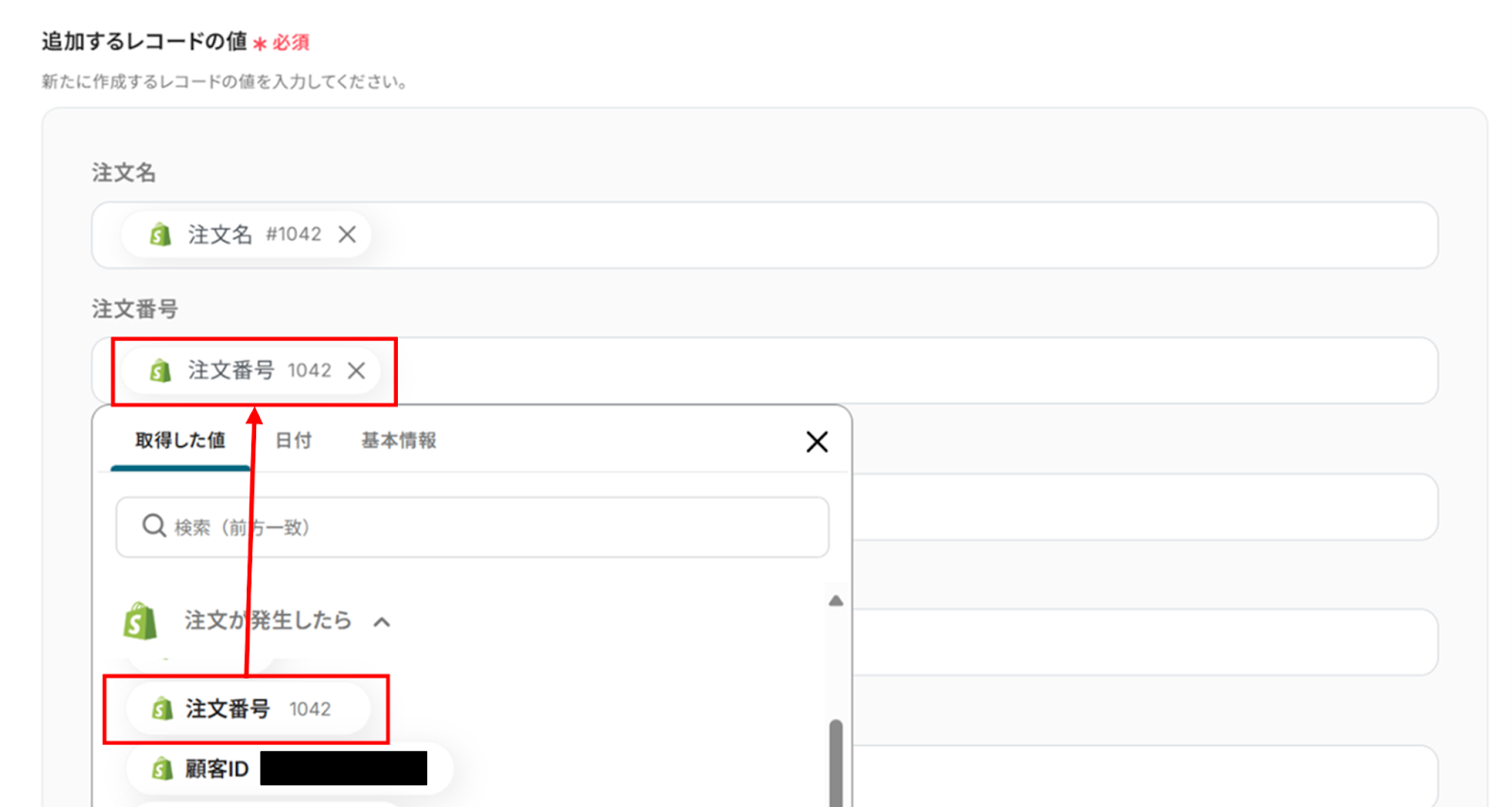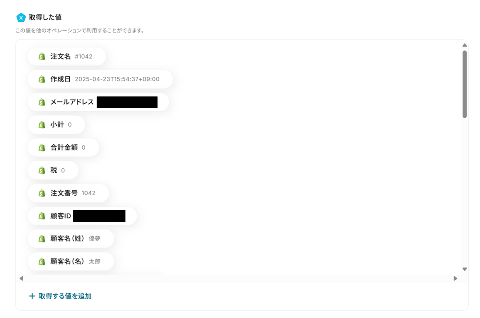 「取得した値」にShopifyの情報が反映されればテスト成功です。