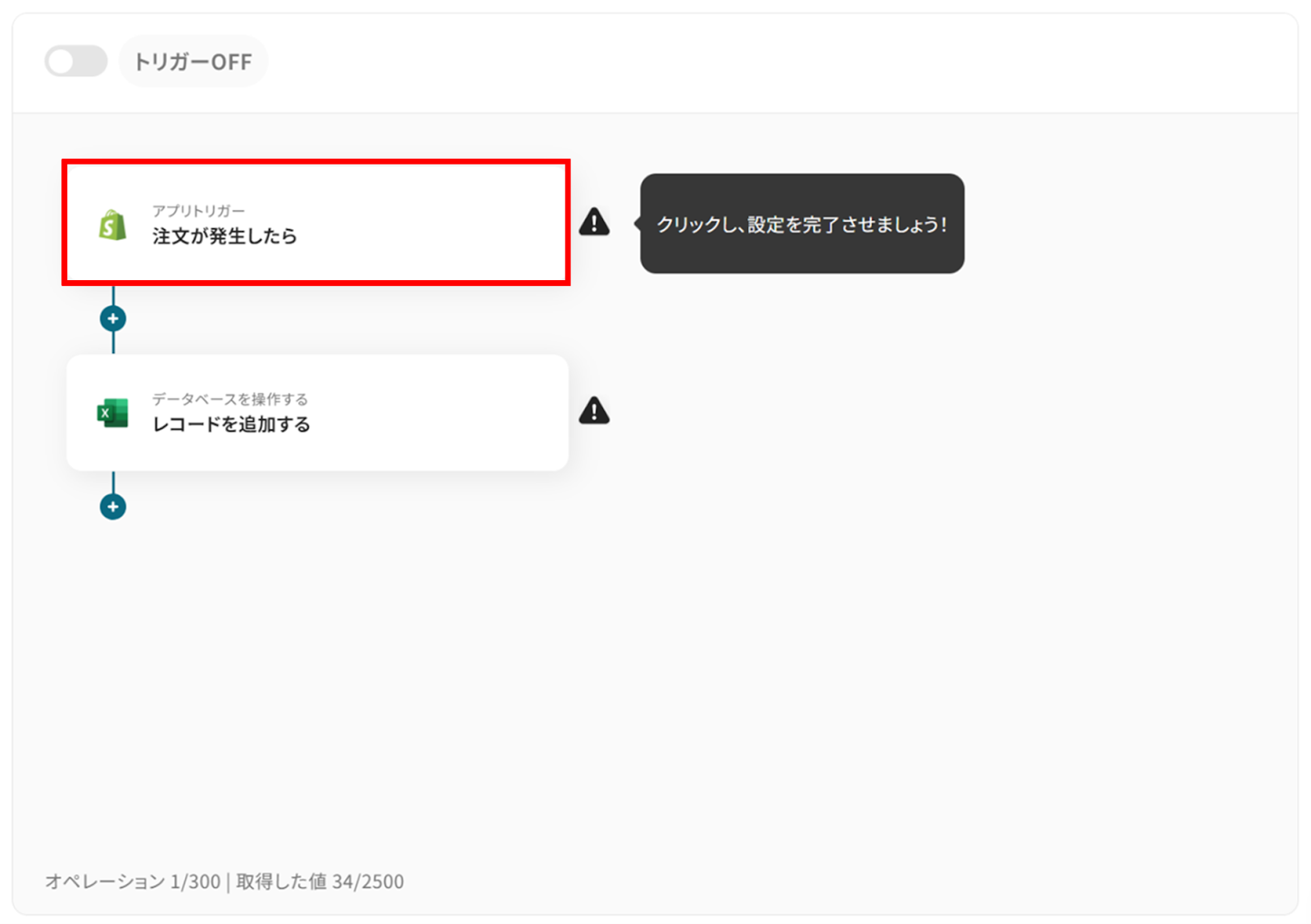 それではここから代表的な例として、Shopifyで新しい注文が発生した際に、その受注データをMicrosoft Excelの指定したシートに自動で追加するフローを解説していきます!
