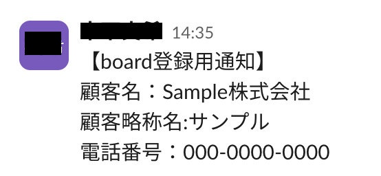 そんなリスクの低減には、Slackの特定チャンネルへの投稿をきっかけに、自動でboardに顧客情報が登録される仕組みが有効でしょう。