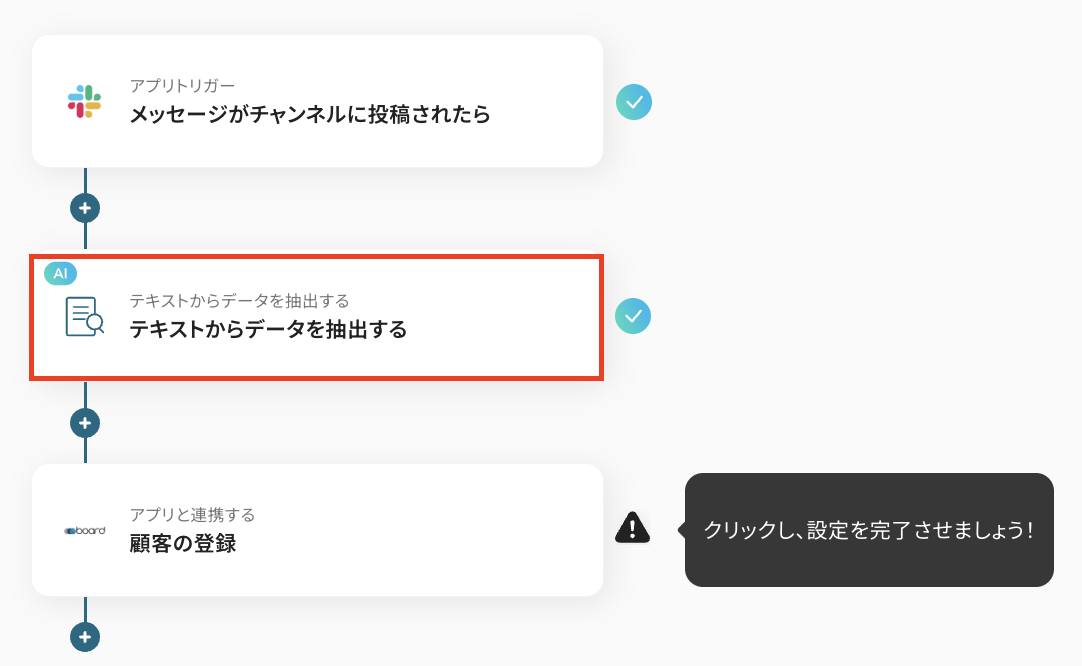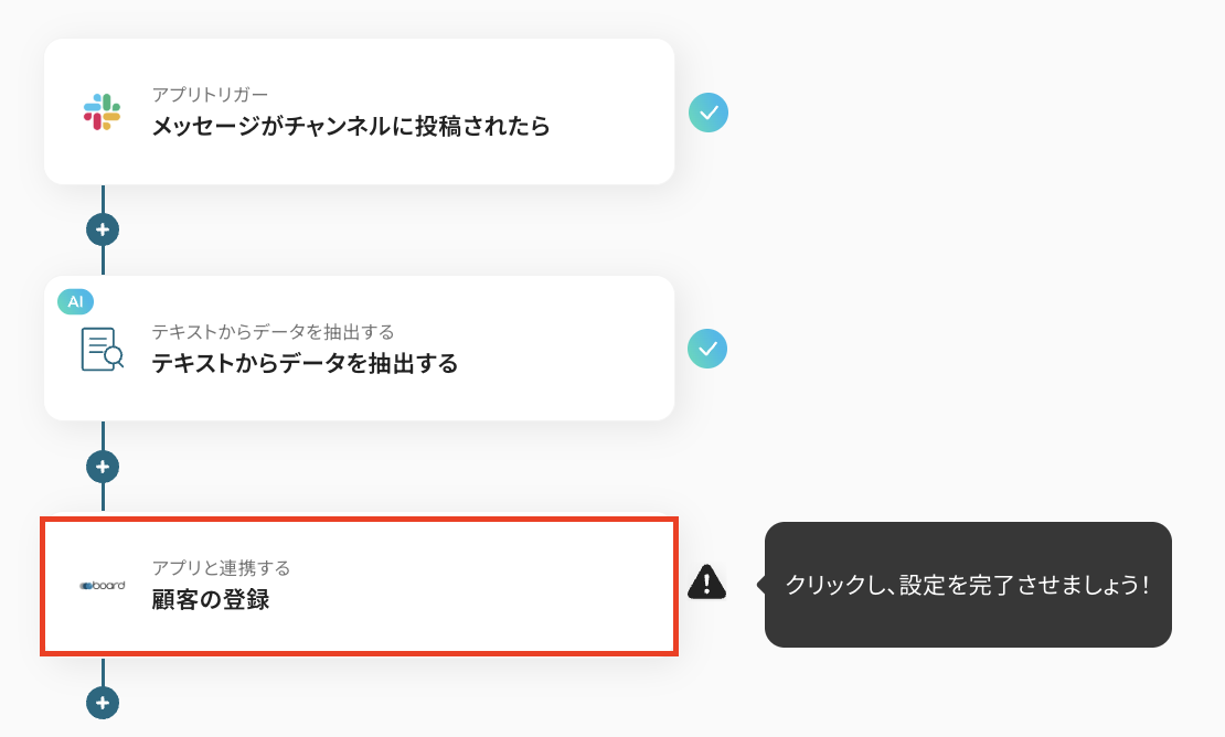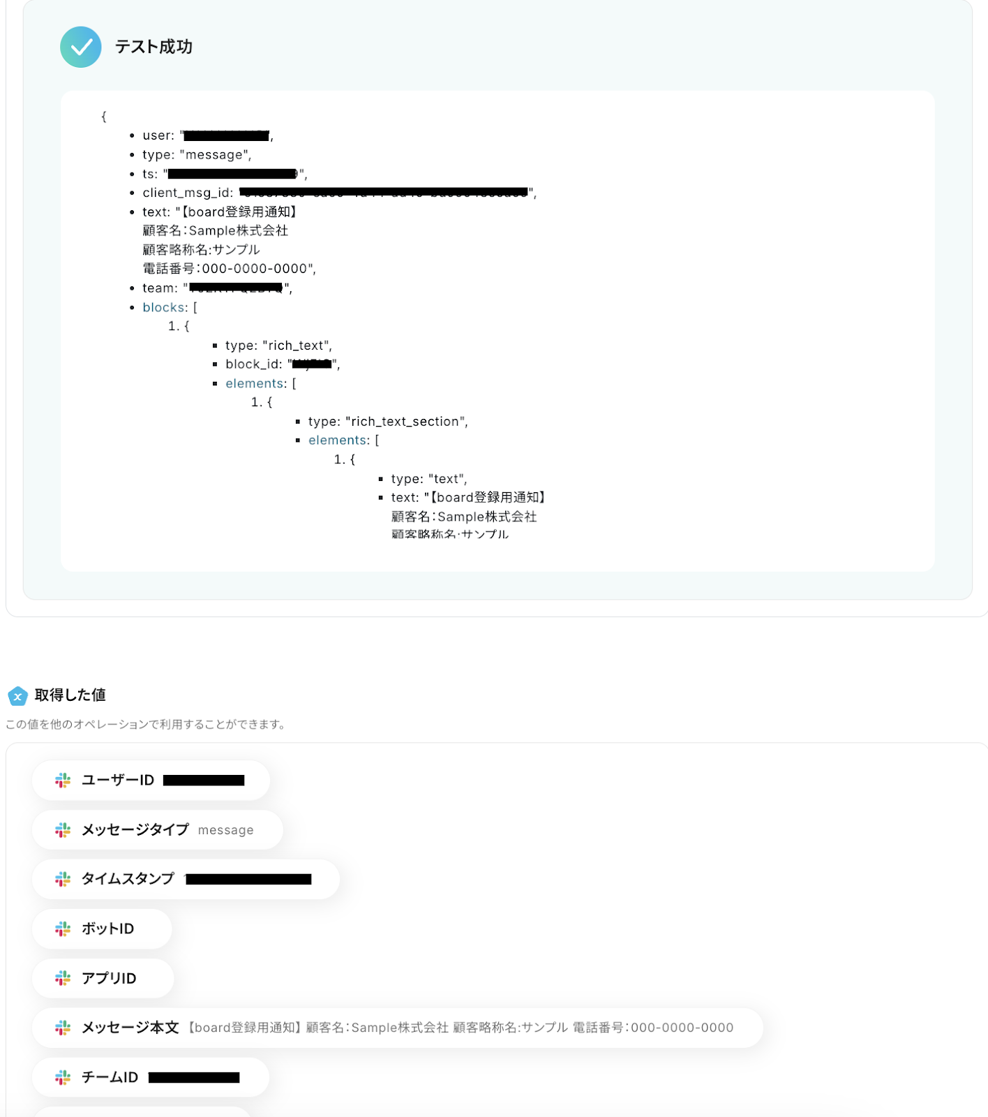 以上が、「Slackの投稿内容をもとに、boardに顧客を登録する」フローの作成手順でした!