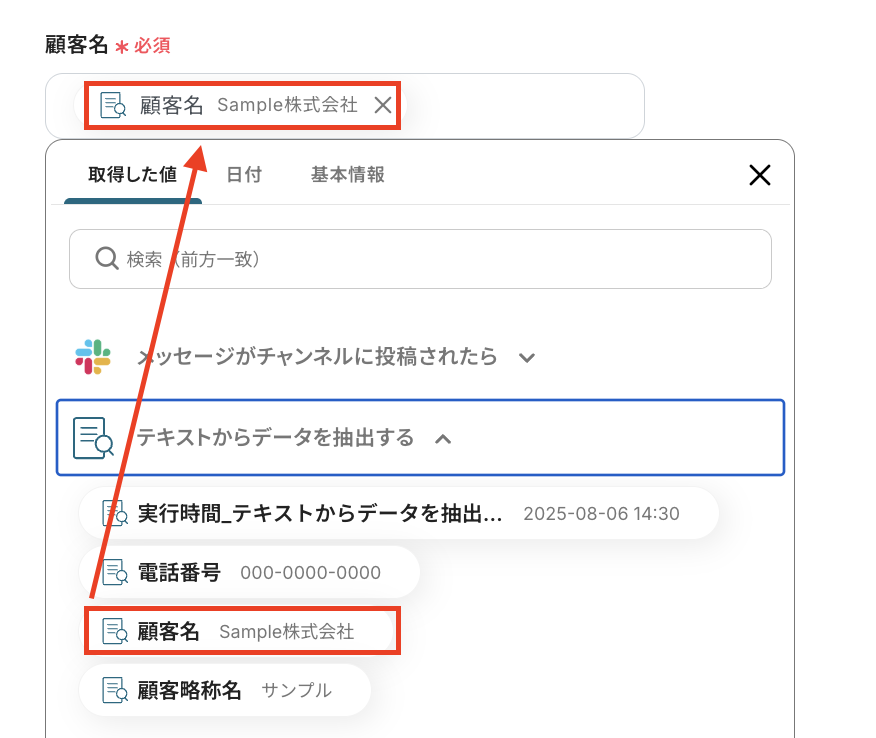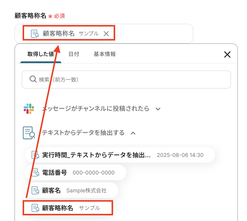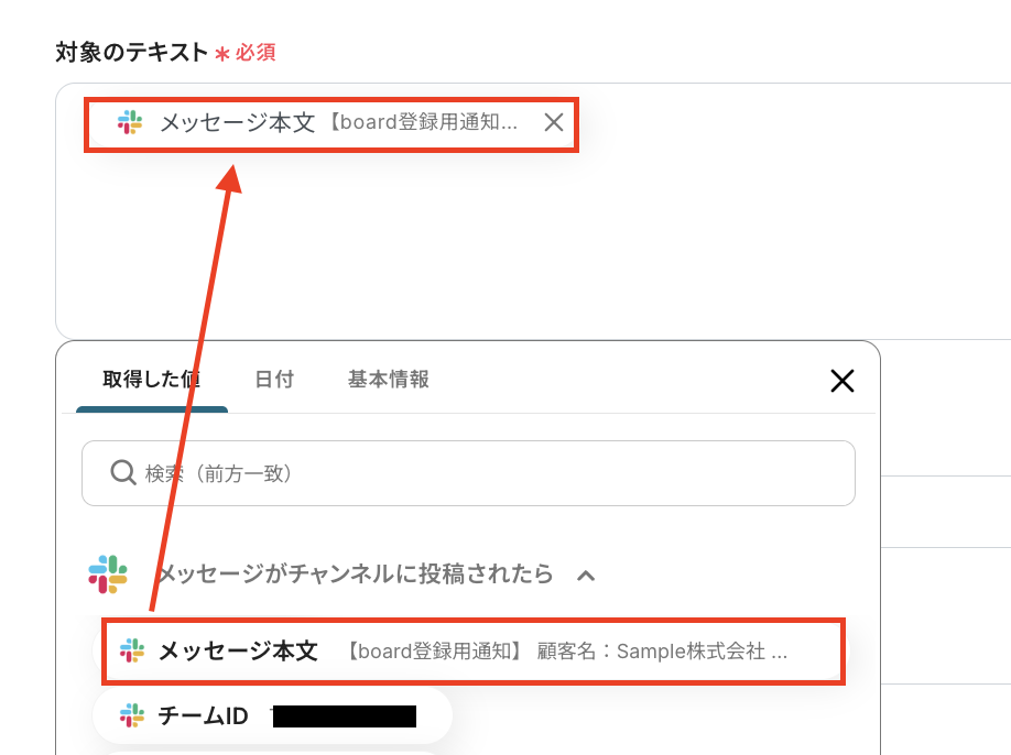 続いて、Slackに投稿されたメッセージ情報を使って、boardに顧客を自動登録する設定を行います。