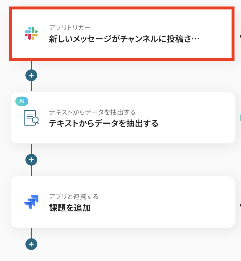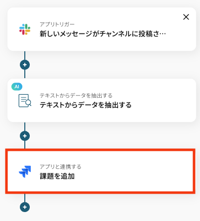 Slackでメッセージが投稿されたらJira Softwareに課題を作成するフローです。