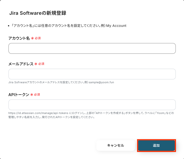 課題のタイトル:Jira Softwareに作成する課題のタイトルを入力します。