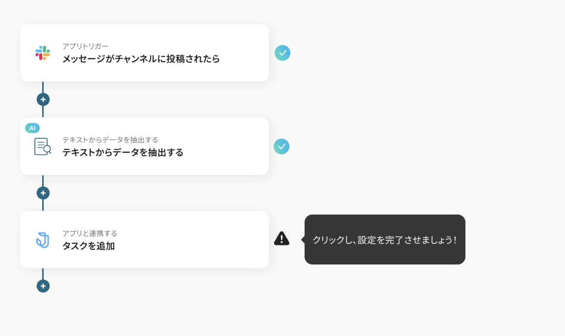 最後に、3つ目のステップ「タスクを追加」をクリックします。
