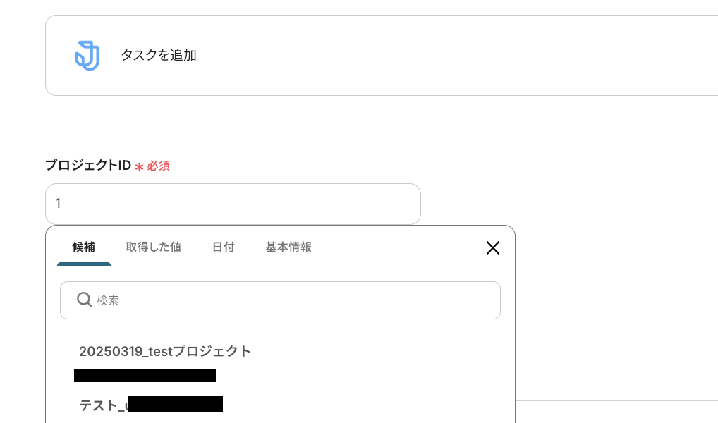 今回のフローではAIによる抽出アクションが入っているので、「タスク名」と「説明」には、抽出結果のアウトプットを引用して設定しましょう。