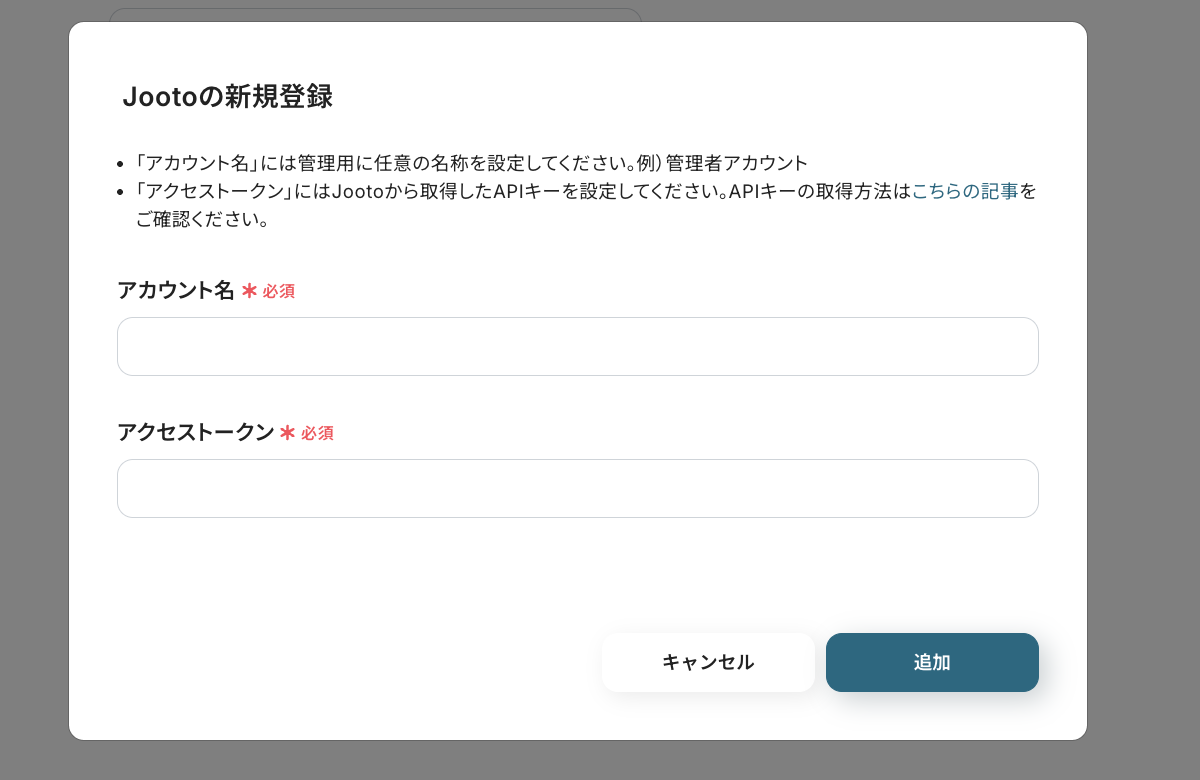 APIキーの取得方法はこちらの記事をご確認ください。必要情報を入力後、[追加]をクリックしましょう。
