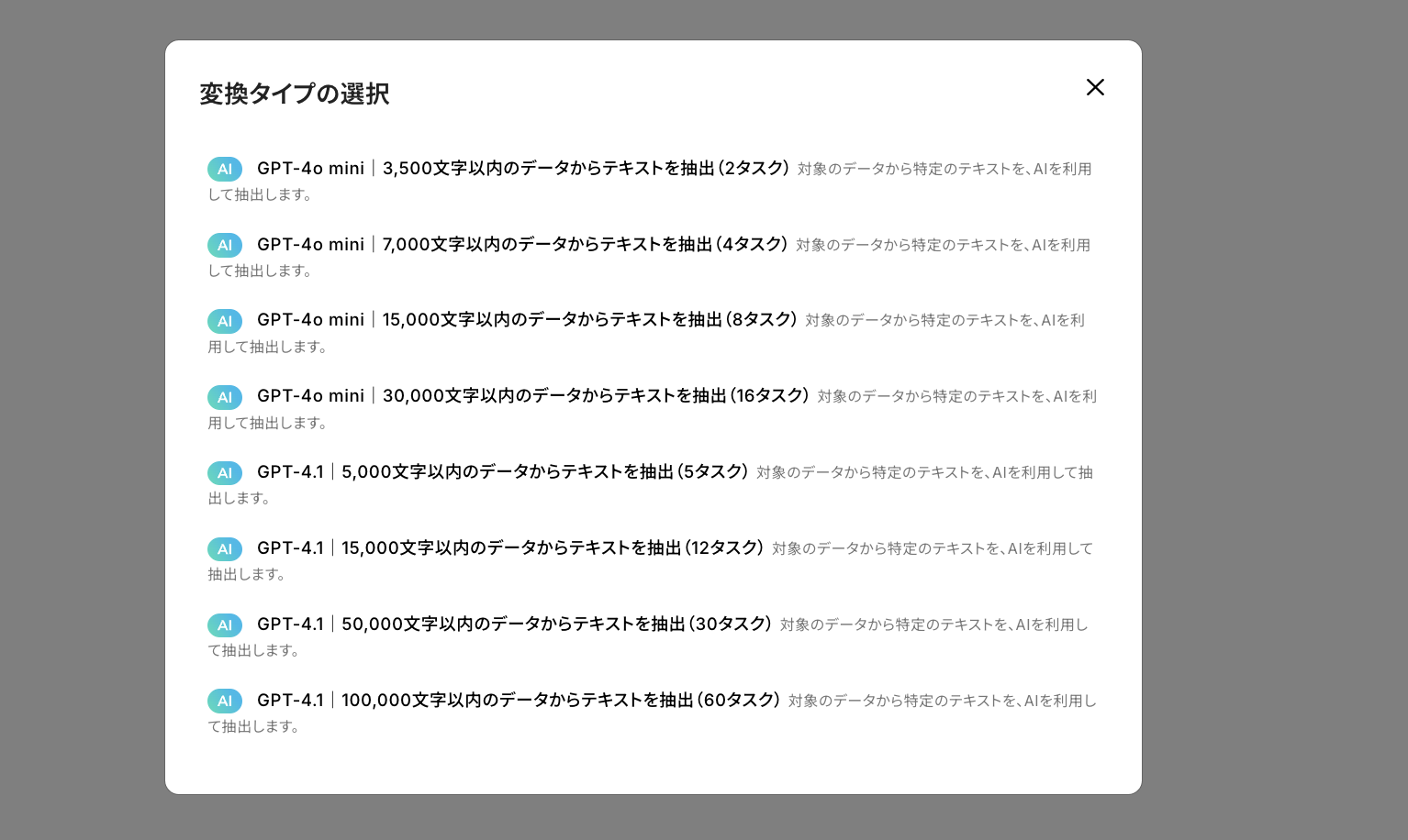 AIを活用した「データの抽出」の設定方法については、こちらのページもご確認ください。