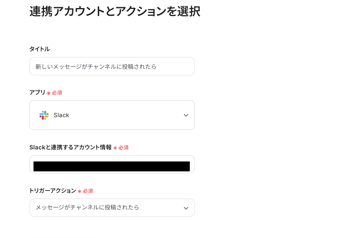 ステップ3:Slackのトリガーアクション設定