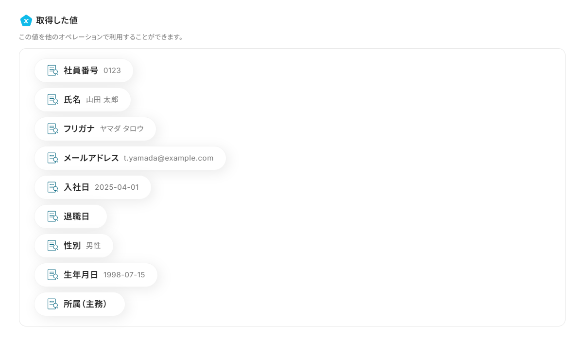 これにより、手作業による手間とミスを削減し、人事情報管理を効率化します。