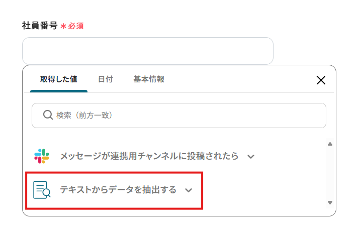 入力欄クリック時に表示されるテキスト抽出メニューから、対応する項目を選択してください。