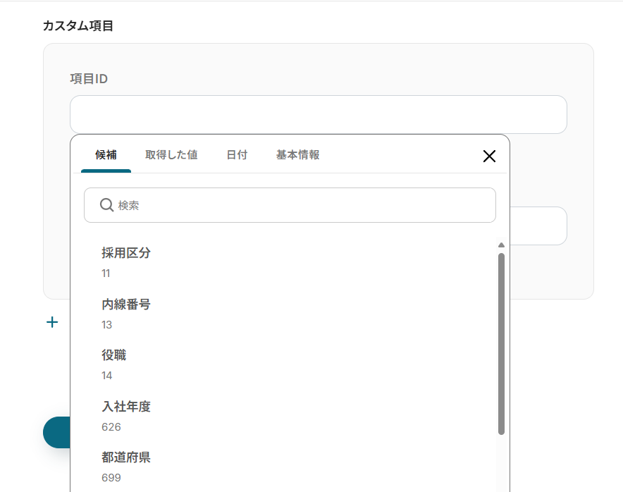 入力欄クリック時の「候補」タブから、増やしたい項目を選択してください。