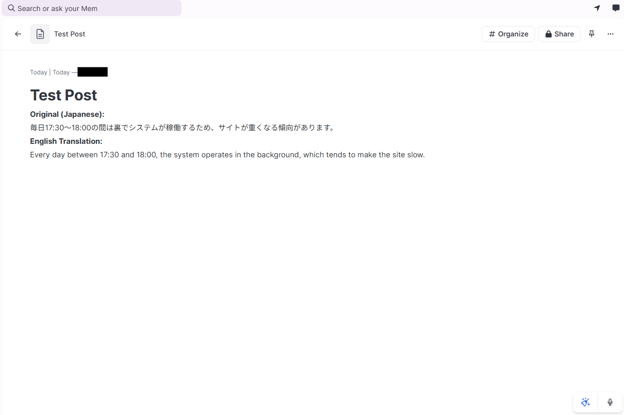 これにより、Slack上で流れていってしまう有益な議論やアイデアを、チームの知識資産としてMemに確実に蓄積できるため、担当者は情報整理に費やす時間を削減し、本来注力すべきコア業務に集中できる環境が整います。