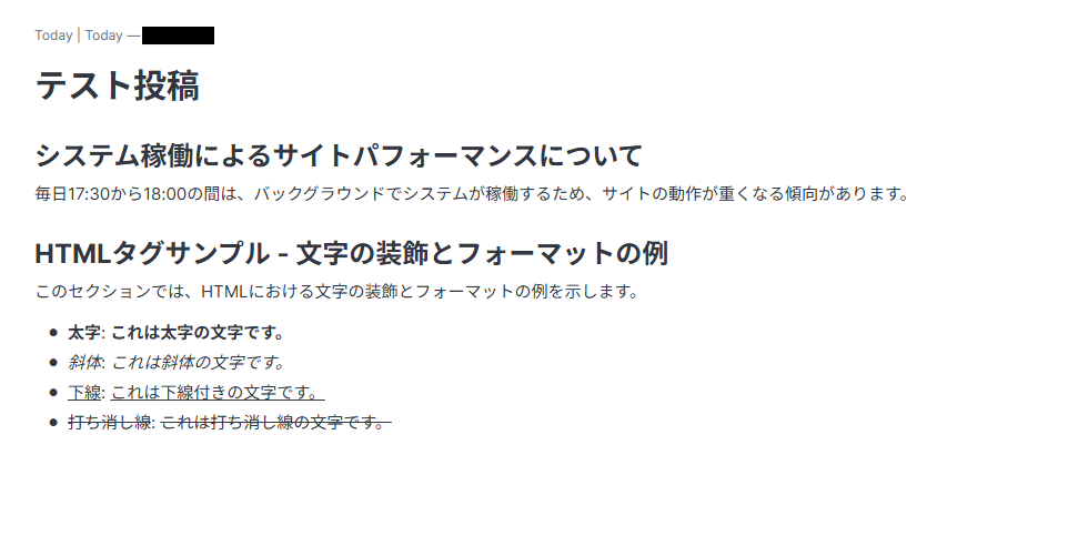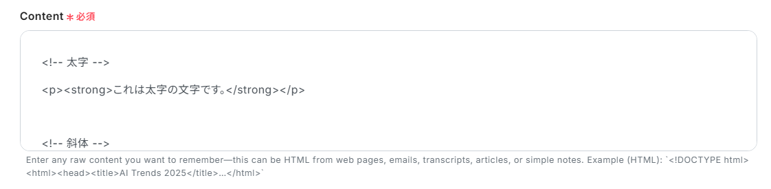 はい。可能です。Contentの入力時にHTMLタグの入力が可能なため、以下のように書式のカスタマイズも行うことができます。