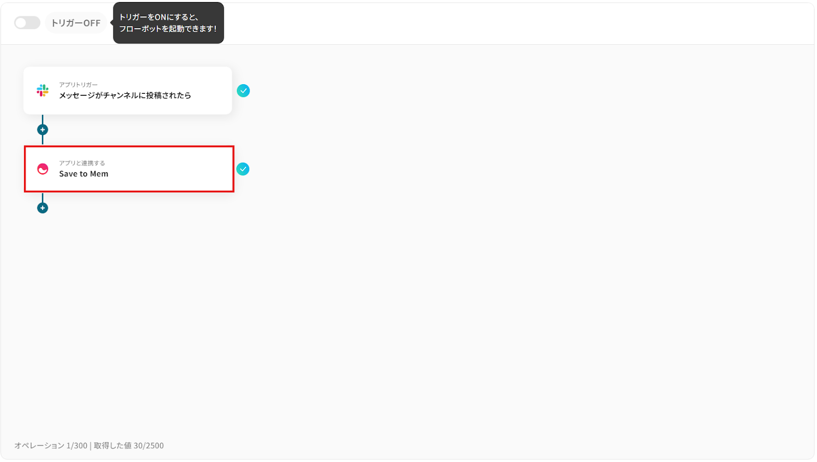 Slackでメッセージが投稿されたら、MemにSaveする Slackの特定チャンネルに投稿されたメッセージや、特定キーワードを含むメッセージをトリガーとして、その内容を自動でMemに保存します。