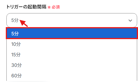 トリガーの起動間隔は、5分、10分、15分、30分、60分のいずれかで設定できます。