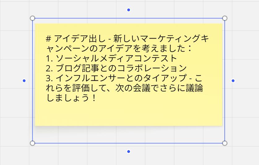 これにより、チャットで流れてしまいがちなアイデアやタスクを手間なくMiroに集約し、後から簡単に振り返ることが可能になります。