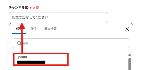 ・投稿先のチャンネルID:欄をクリックし、表示された候補から送付したいチャンネルを選択します。
