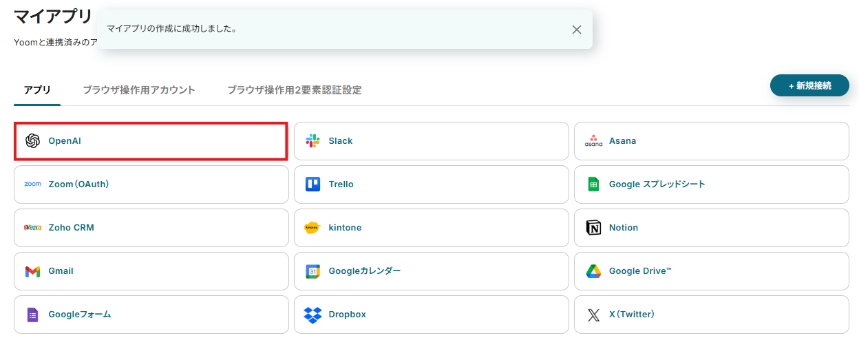 1.Slack、ChatGPTそれぞれのアプリとYoomを連携してください。(マイアプリ連携)