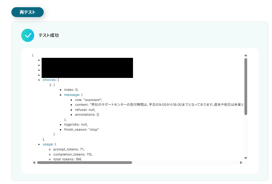 - OpenAIが設定されたプロンプトに基づき回答を生成するため、担当者による回答の質のばらつきを防ぎ、対応品質を均一化できます。