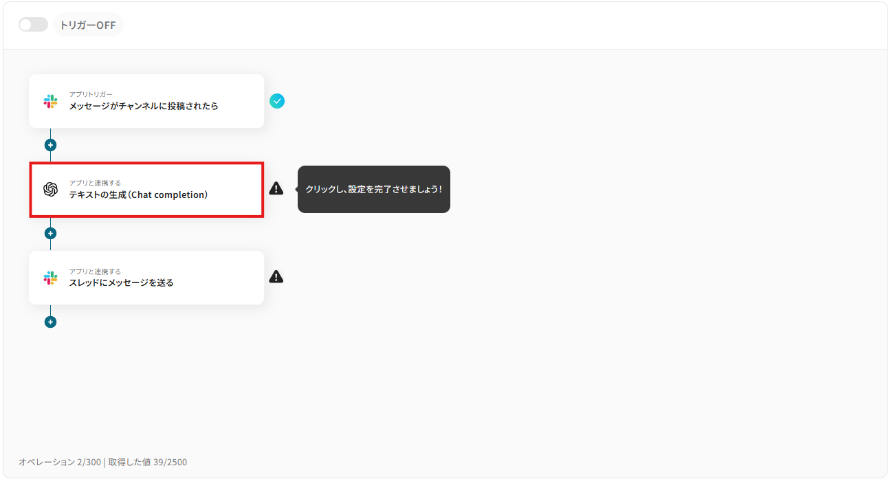 - Slackのトリガー設定およびOpenAIのアクション設定