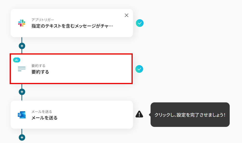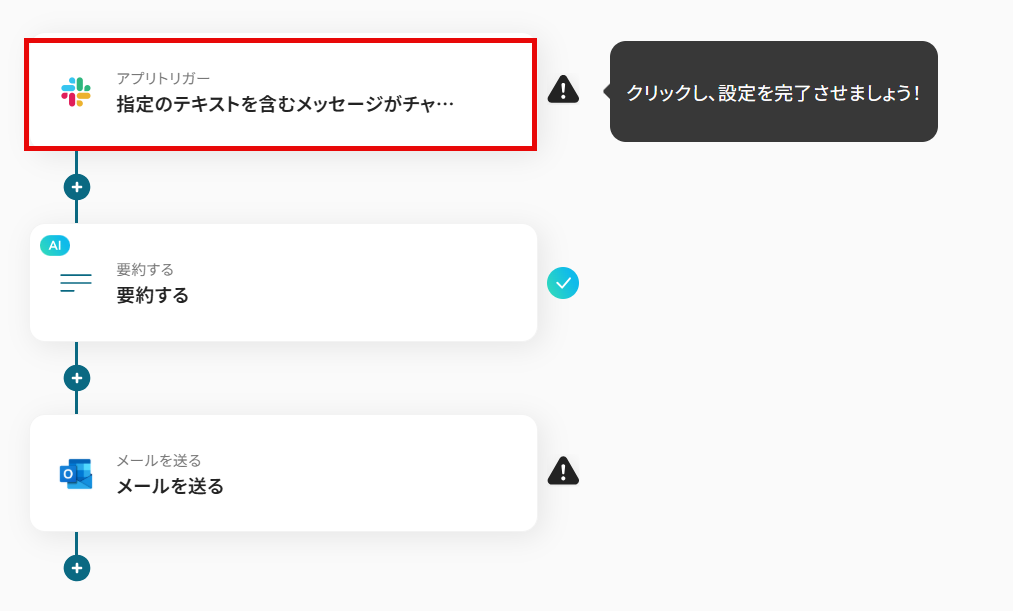 このワークフローを活用すれば、Slackで特定のキーワードを含むメッセージが投稿された際に、AIが自動で内容を要約し、指定した宛先にOutlookでメール通知します。