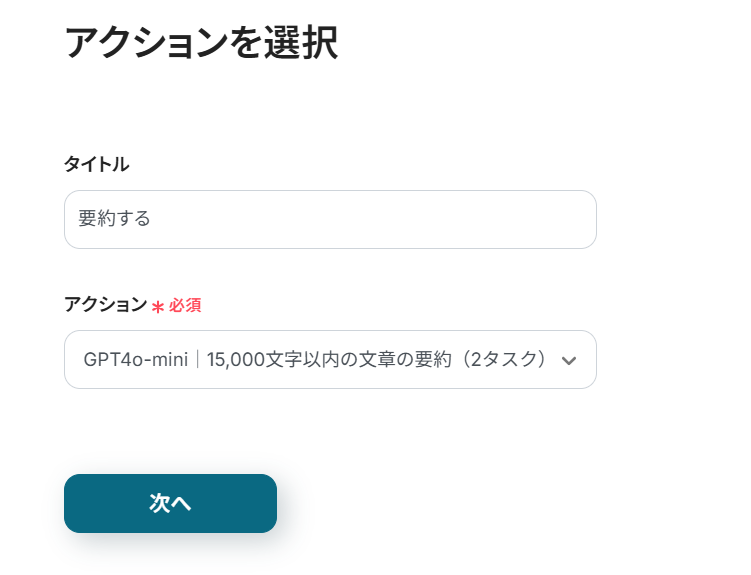 - アクション:使用するAIや文字数によって消費するタスクが異なりますので、適切なアクションを選択してください。