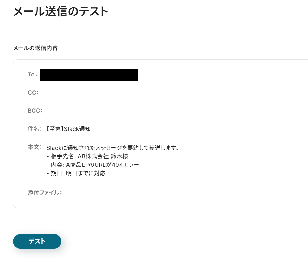 テスト用にSlackにメッセージを送信します。