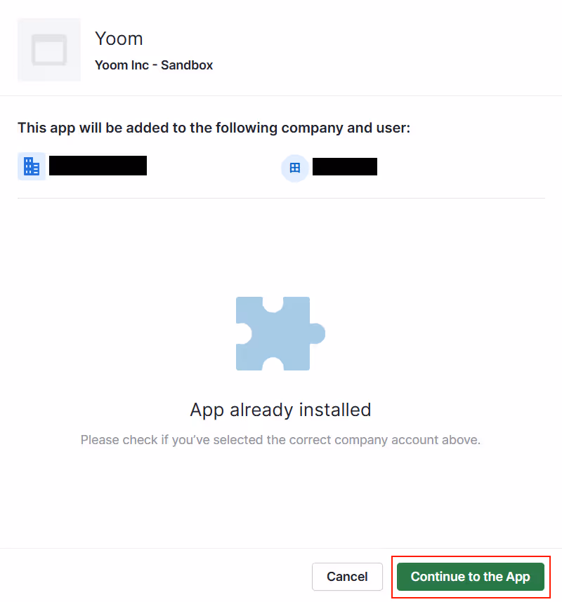 内容を確認し問題なければ「Continue to the App」をクリックします。