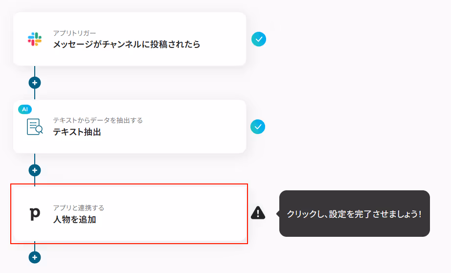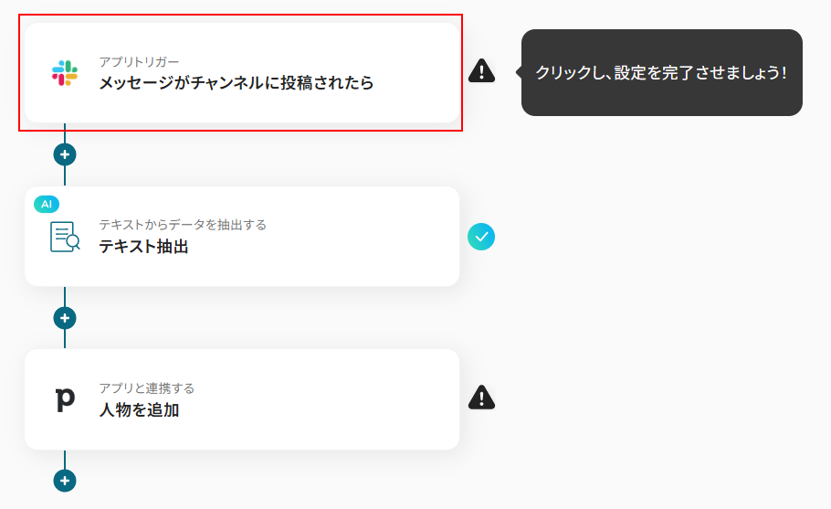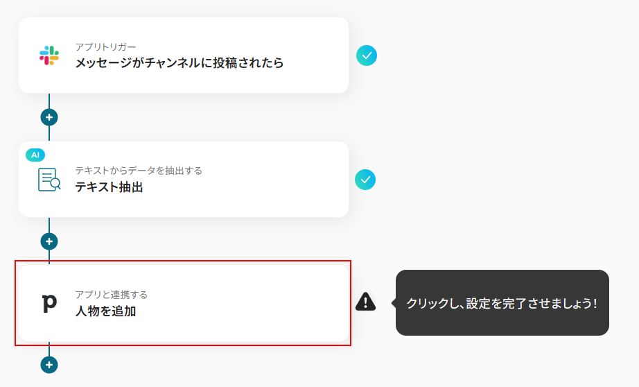 今回は「Slackでメッセージが送信されたら、テキストからデータを抽出してPipedriveに人物を追加する」フローを作成していきます!