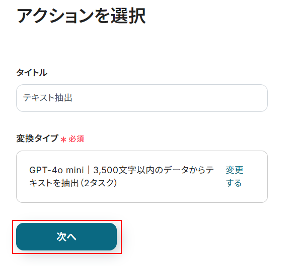 今回、変換タイプはデフォルトで設定されている「GPT-4o mini 3500文字以内」を使用します。